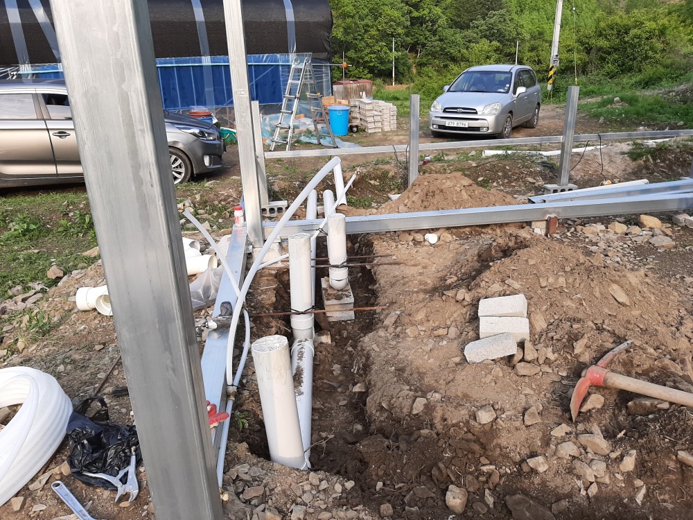 농막 측면 데크 용접 작업 및 화장실배관작업