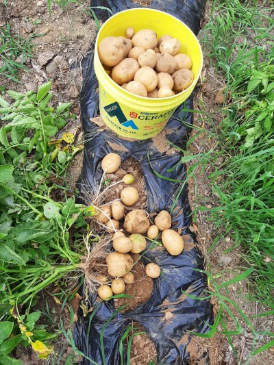 텃밭 감자수확중