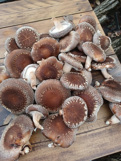 오랜기간의 시간을 버티고 잘 올라온 표고버섯의 자태가